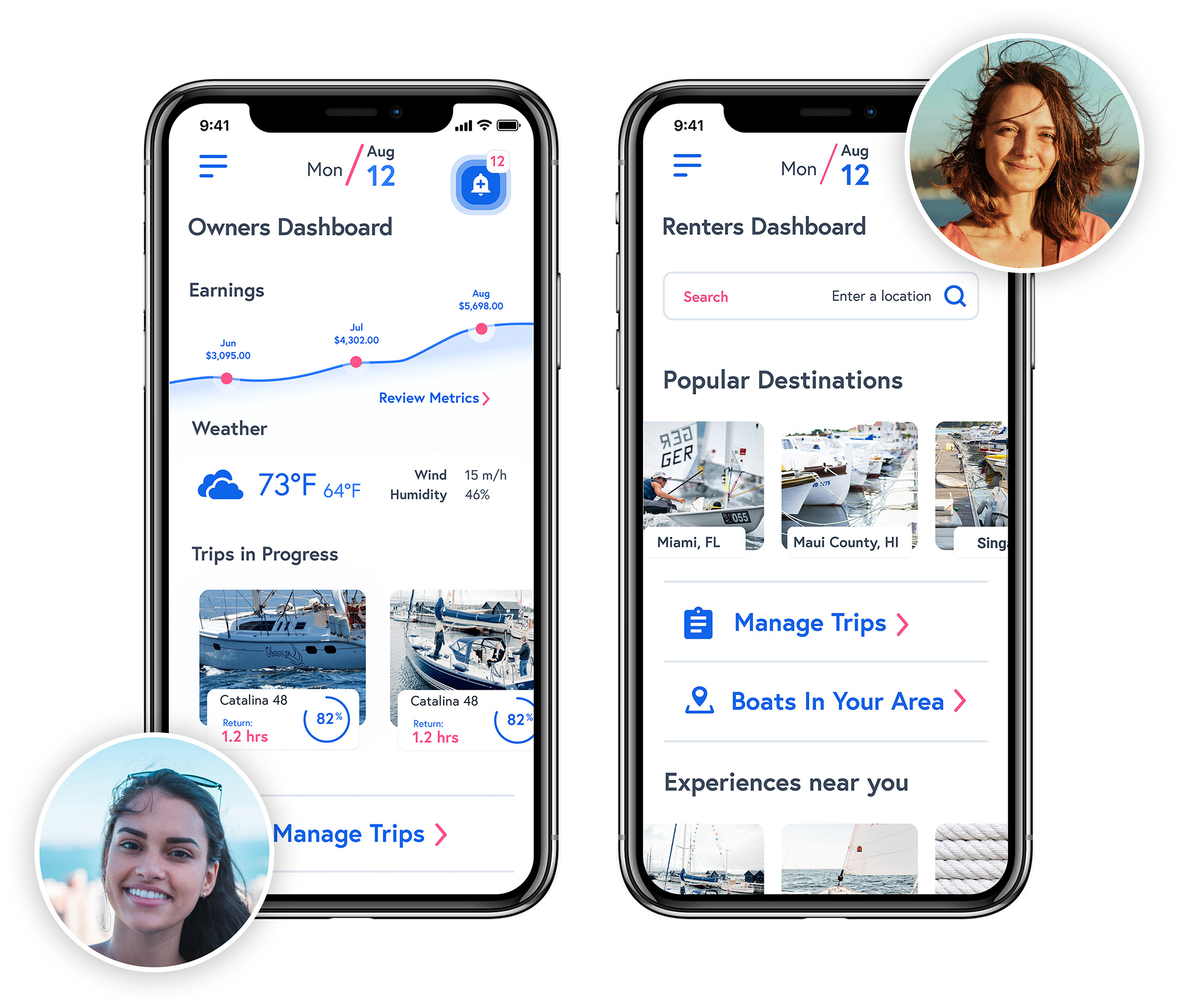The renters dashboard, on the other hand, emphasized flexibility and discovery. Renters prioritized managing bookings and wanted a quick way to see what boats were available nearby. I built tools that let them search by location, date, and boat type—whether they were planning a local outing or exploring options in a different destination. Their dashboard kept trip details and recommendations front and center, making planning and follow-through seamless.