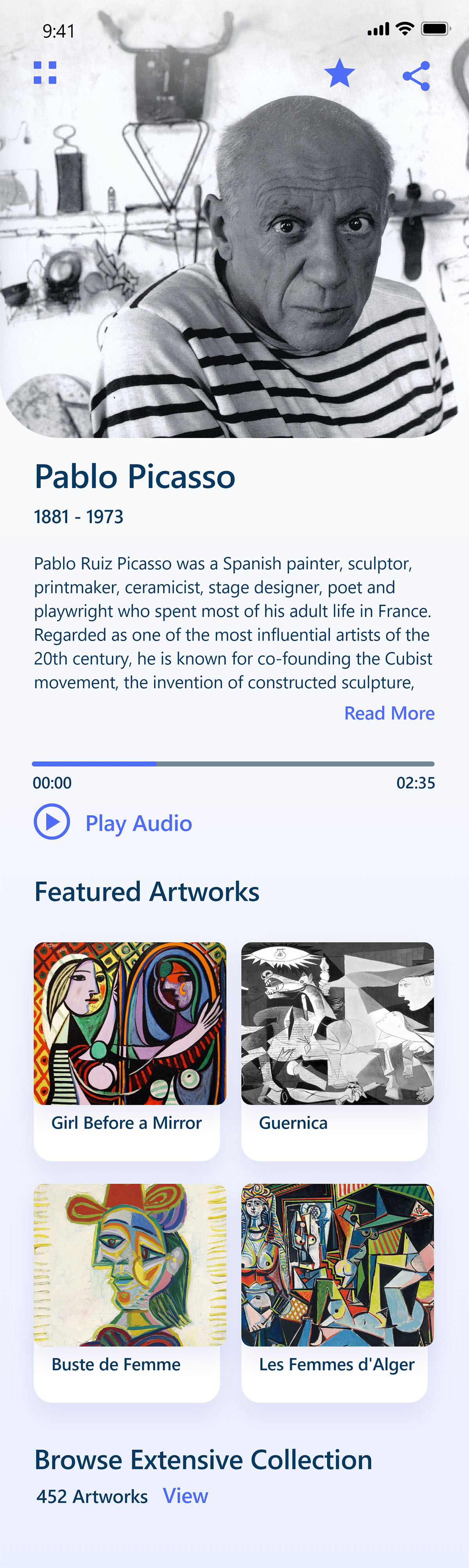 Building on the two previously developed storyboards—one illustrating the navigation path to a detailed artwork page through museum and artist selection, and the other mapping the experience of using the scan feature to instantly access artwork details—I created a quick, low fidelity clickable prototype. By focusing on these key user flows, the prototype presents a polished and realistic interaction experience across just a small number of screens.